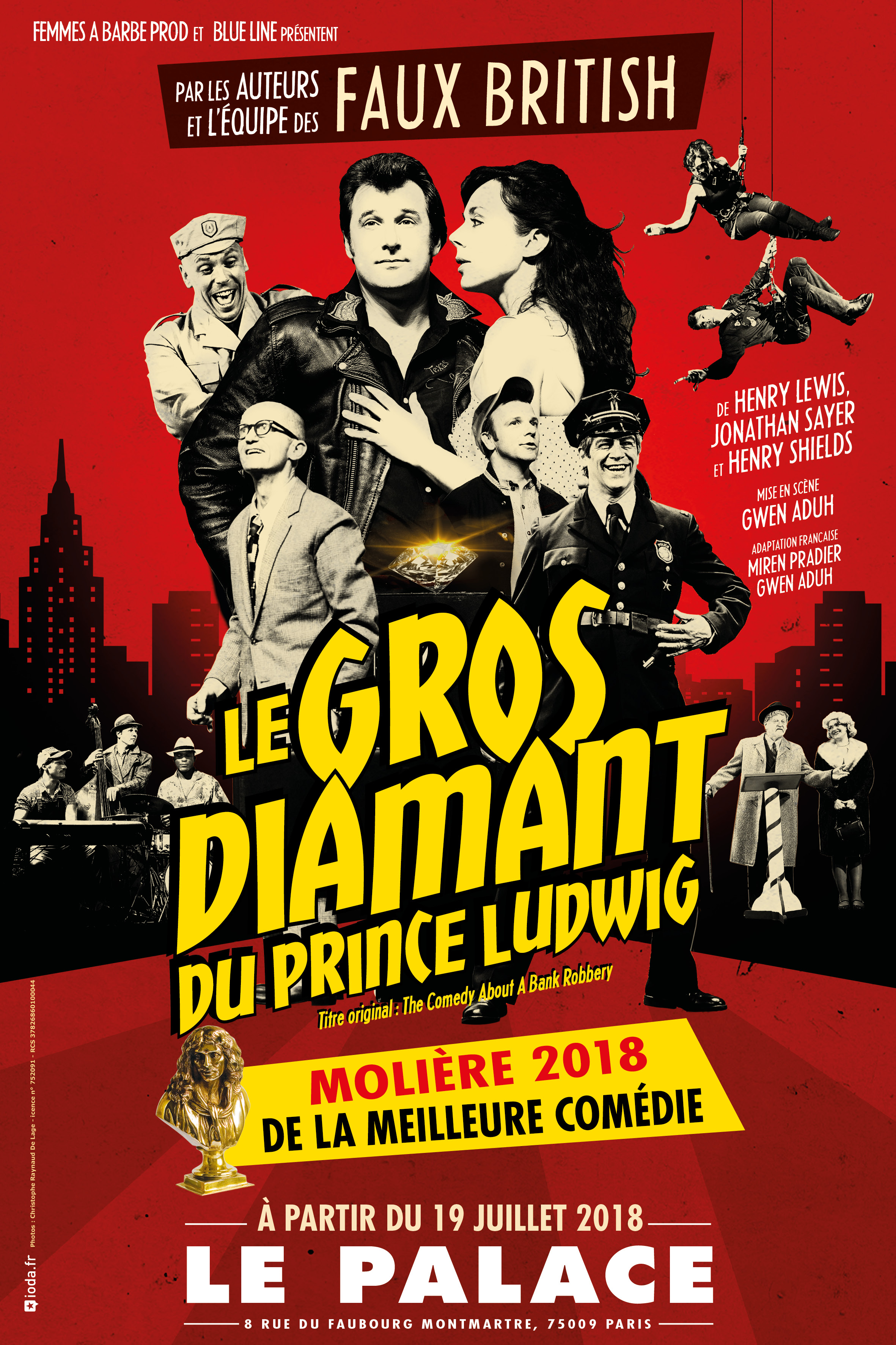 Molière de la meilleure comédie 2018, Le Gros Diamant du Prince Ludwig c’est un film de cinéma reconstitué au Théâtre !