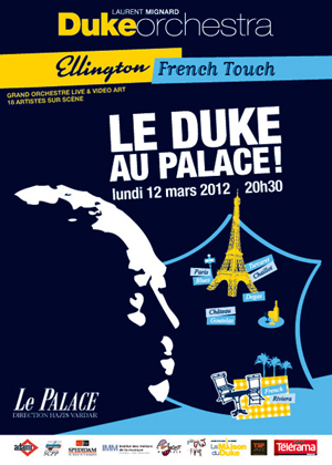 Homme de culture, ambassadeur du « bon goût », Duke Ellington a toujours éprouvé une affinité particulière pour Paris et la France. Depuis sa première visite en 1933, il a noué une solide relation avec un public chaleureux et connaisseur. Dans cette nouvelle création au Palace, Laurent Mignard Duke Orchestra invite Nicolle Rochelle (comédienne – chanteuse – danseuse) et Duke Ellington lui- même. Par la magie du video-art, il témoigne, présente des inédits, dirige l’orchestre, communique ses valeurs … Le Duke méritait bien un Palace ! |